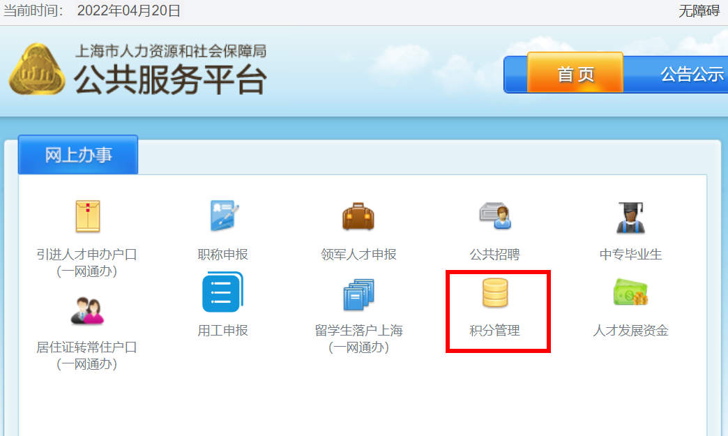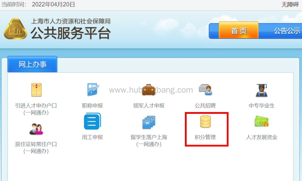 上海市居住证积分办理可以网上申办,办理平台:上海市人社局官网
