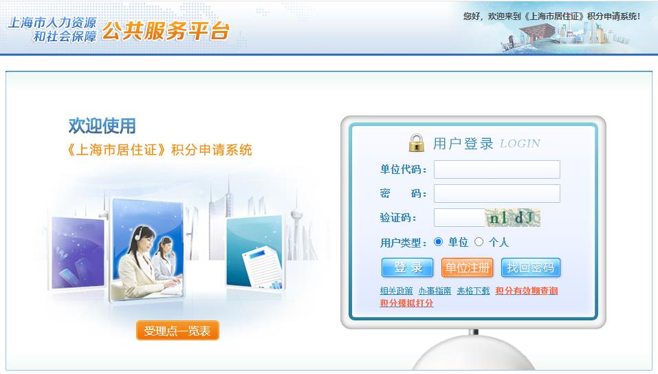 上海市居住证申请积分的用人单位,在上海市人力资源和社会保障局官网上进行单位网上注册。