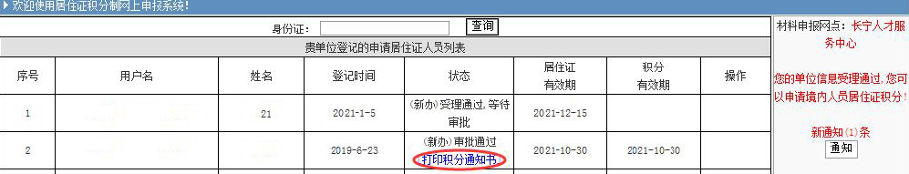 2.【网上打印】打印上海积分积分通知书不想到处跑,可以由用人单位或个人用户登录《上海市居住证》积分申请系统,即可网上打印《上海市居住证》积分通知书!