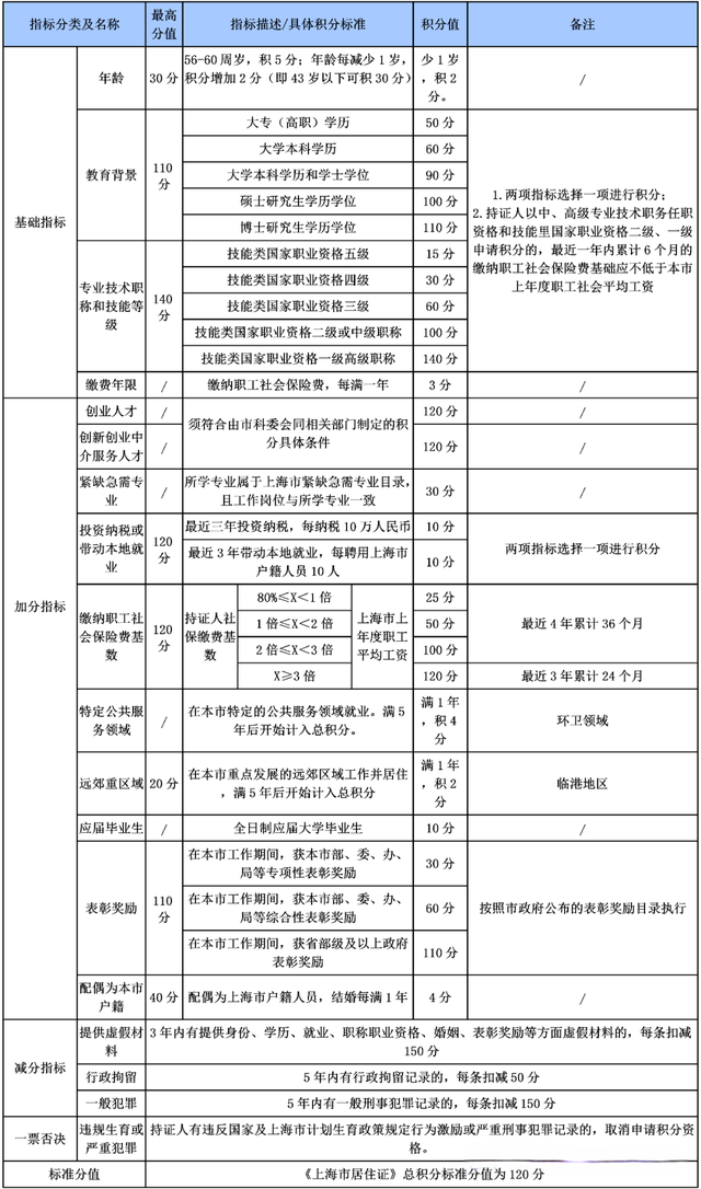 上海《居住证》积分指标体系由基础指标、加分指标、减分指标和一票否决指标组成。
