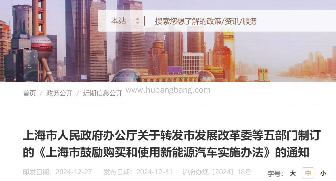 2025上海市鼓励购买和使用新能源汽车实施办法(政策官方原文)