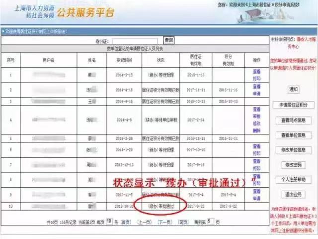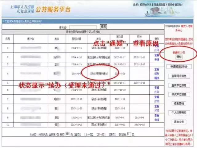 2.打开上海市人力资源和保障公共服务平台,登录单位账号,由单位人事对积分续办人员信息进行审核。如图: