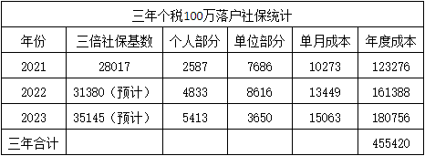 6、支出成本:一年的3倍社保支出,按2021的缴费标准来算大概13万,3年大概需要50万,外加100万个税, 合计一共150万!(还没有算公积金,并且达到条件后申请落户还需要半年,届时还要多加10万左右的社保)