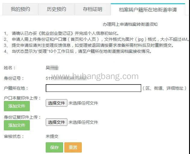 请准确输入户籍地址、上传身份证和户口本对应图片,保存并提交,然后等待审核。
