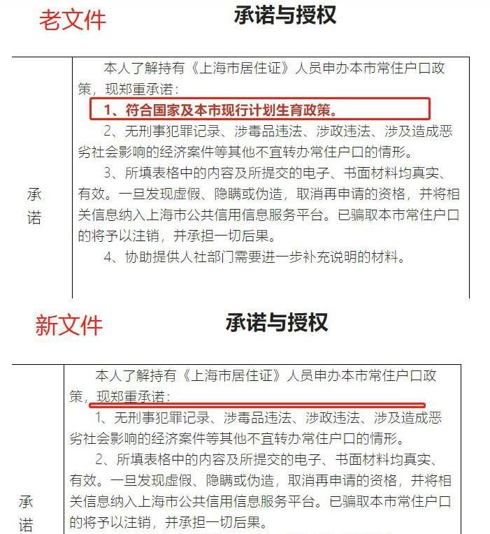 1.上海居转户和留学生落户最新政策《承诺与授权文件》取消了“符合国家及本市现行计划生育政策”限制条款。