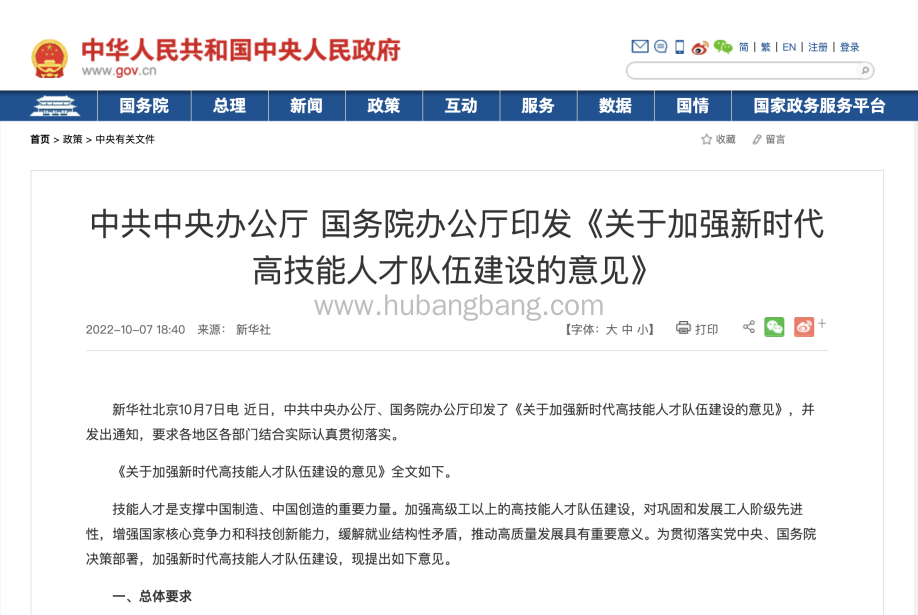 中共中央、国务院发文打破学历、资历、年龄、比例等限制,明确支持高技能人才纳入城市直接落户范围,《关于加强新时代高技能人才队伍建设的意见》提出: