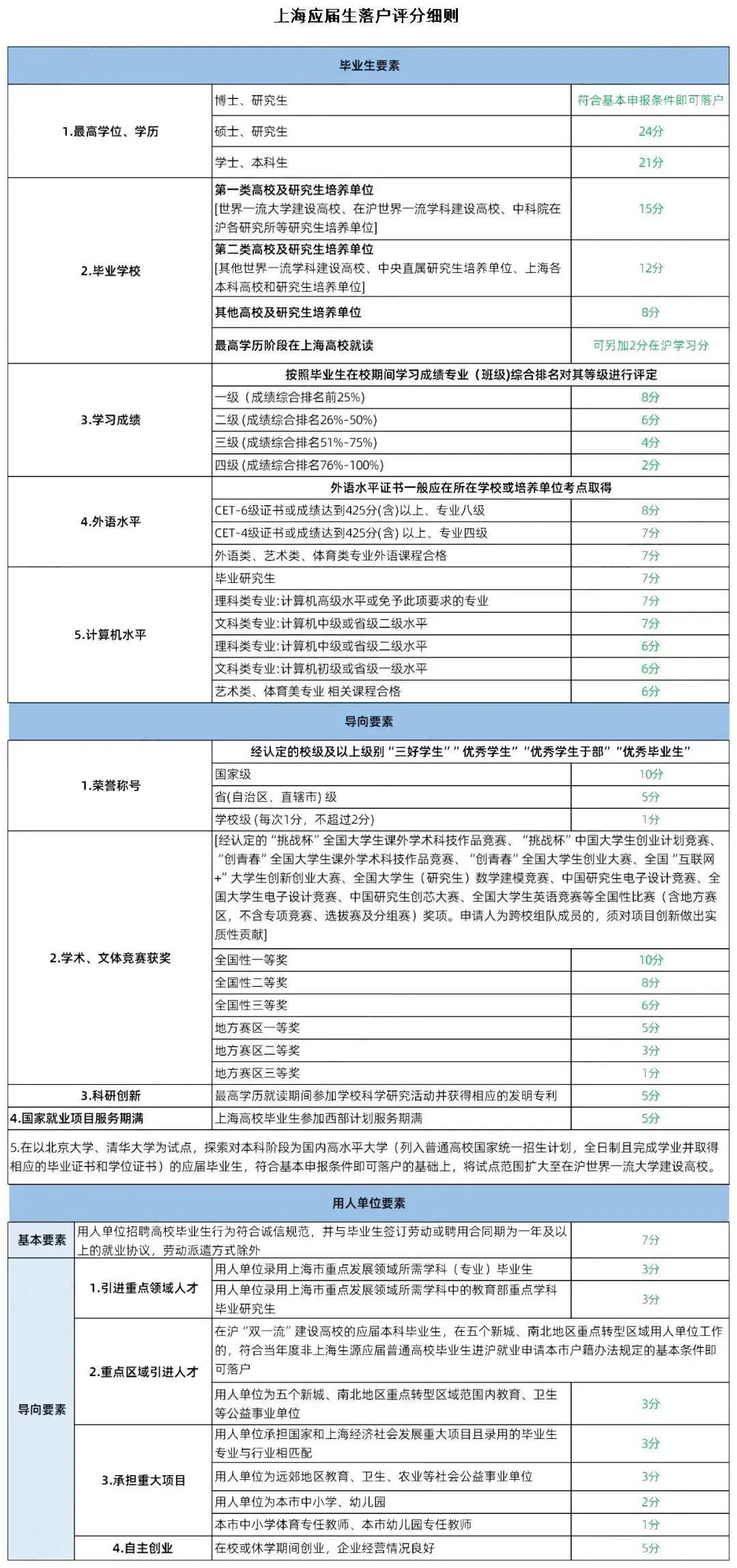 2、硕士24分+一类高校15分+成绩(25%-50%)6分+英语六级8分+计算机7分+单位满分(包括毕业专业为最高分专业和就业单位为最高分单位)13分+在沪学习2分>72分