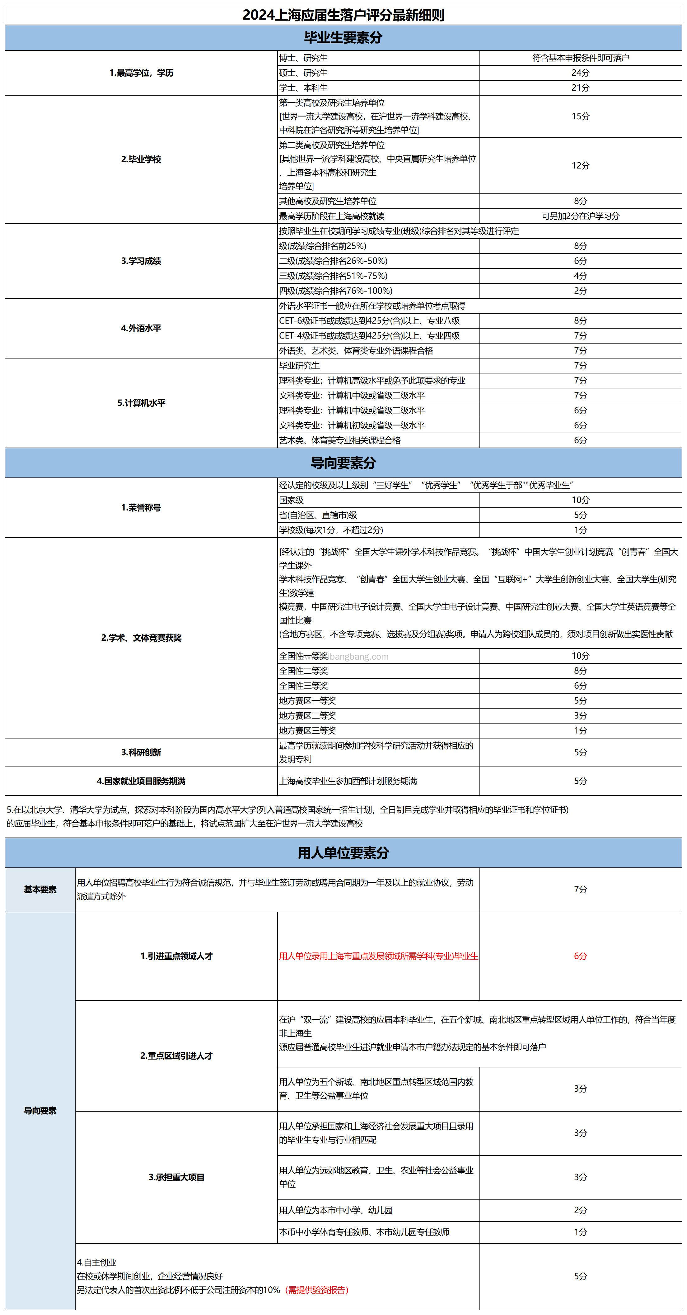 直接变成了“用人单位录用上海市重点发展领域所需学科(专业)毕业生6分。