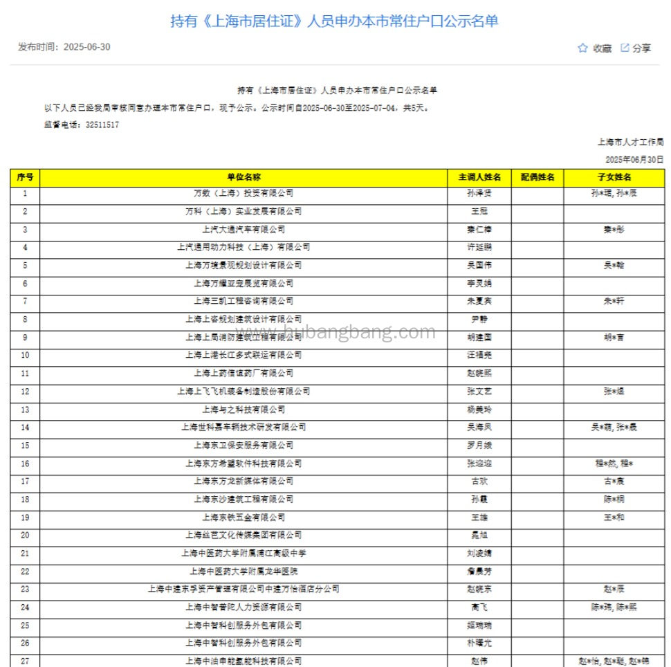 2025上海7月第2批最新落户名单公示公示为5个工作日,结束后可登上海一网通办在落户审批查看自己的状态是否通过。居转户和引进人才落户是众多落户中占比人数最多也最符合普通人落户的方式。要落户前可详细了解他们的申请门槛,也为自己落户上海开始做好相应准备。如果在这其中有任何问题可以点击下方咨询我们,沪邦邦上海积分咨询老师都会为你在线解答的!