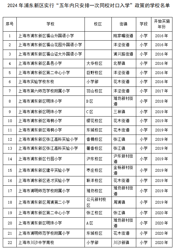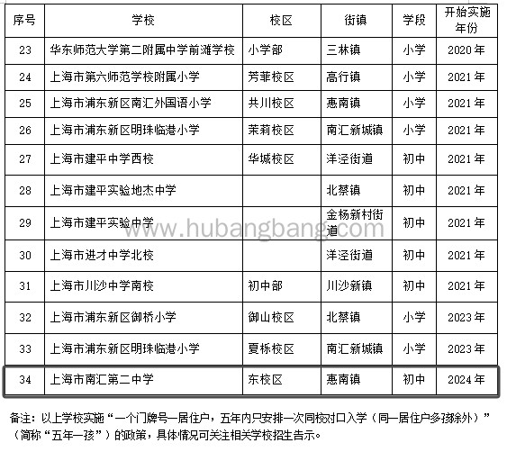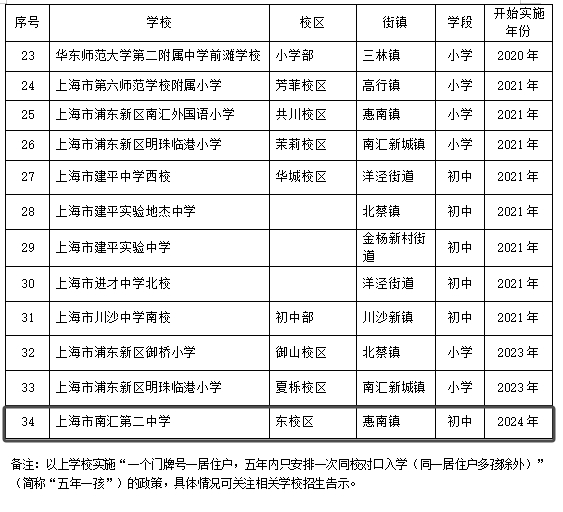 浦东2016年开始实施五年一户,今年的招生政策中强调继续在部分学校实施五年一户政策并新增了一所学校:上海市南汇第二中学。